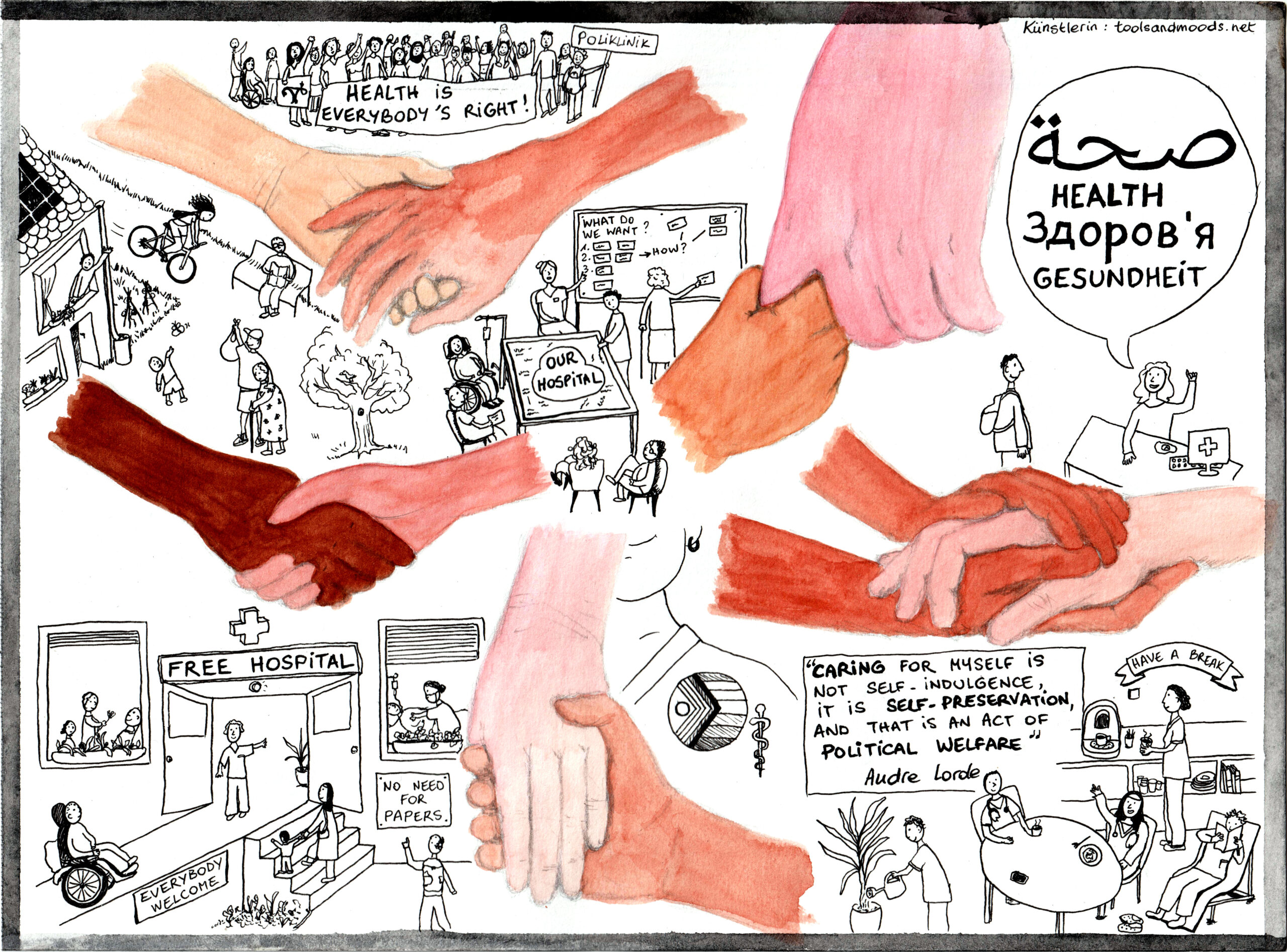 drawing for the group “poliklinik bonn” who are advocating for solidary health structures